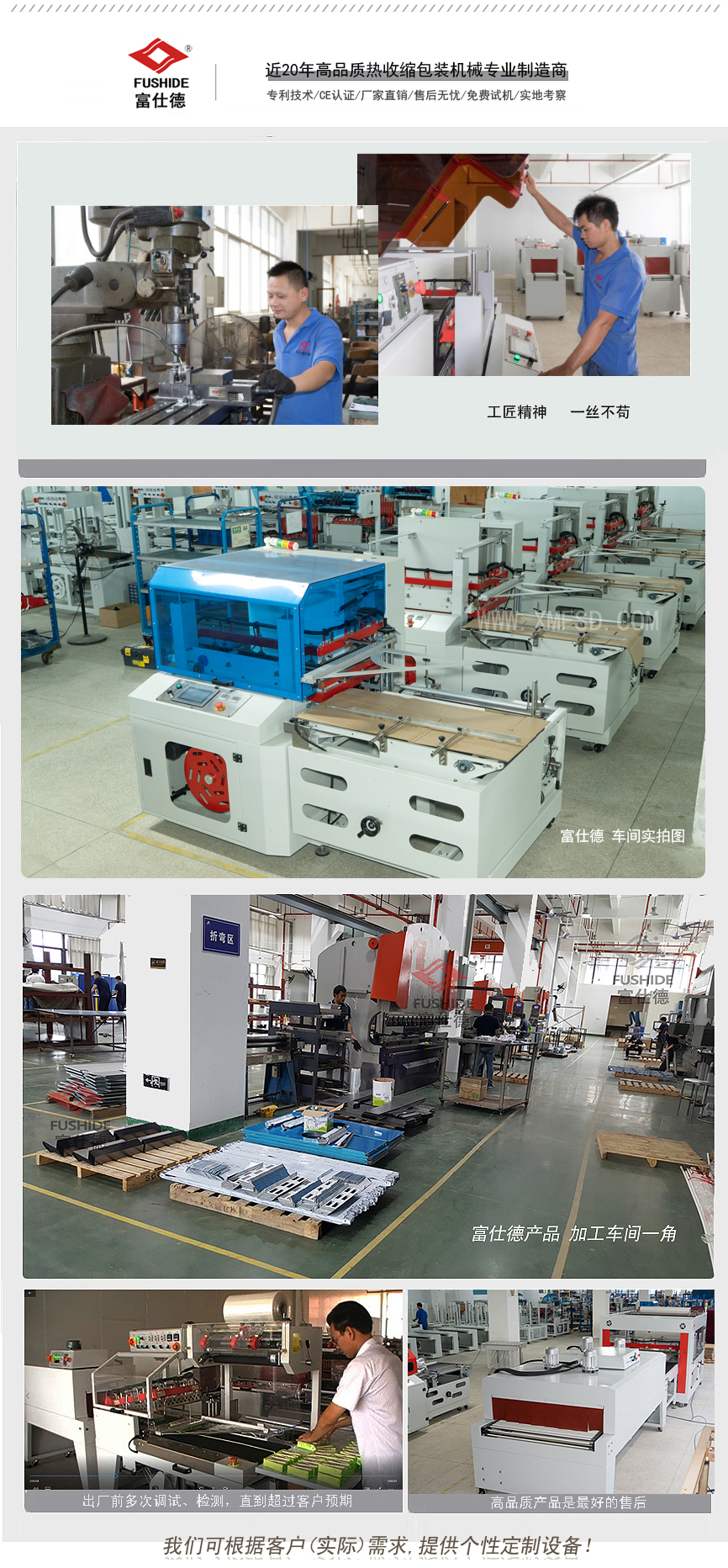 廈門市富仕德包裝機(jī)械有限公司總部位于福建省廈門市,是一家成立近20年,專業(yè)從事高端熱收縮包裝機(jī)的研發(fā)、設(shè)計(jì)、制造和銷售為一體的實(shí)業(yè)公司,擁有多個(gè)系列全自動(dòng)熱收縮膜包裝機(jī)械產(chǎn)品。公司自創(chuàng)辦以來:一直"以質(zhì)量贏信譽(yù),以信譽(yù)創(chuàng)品牌,以品牌贏市場(chǎng)"的經(jīng)營(yíng)理念,狠抓企業(yè)內(nèi)部生產(chǎn)管理,注重科技創(chuàng)新和工匠精神,產(chǎn)品不斷更新、品質(zhì)日趨卓越、性能更加穩(wěn)定、結(jié)構(gòu)更具人性化合理化;公司始終一如既往為我們的品牌客戶,提供優(yōu)質(zhì)可靠產(chǎn)品和完善的售后服務(wù),與之共同發(fā)展,共創(chuàng)佳績(jī)。